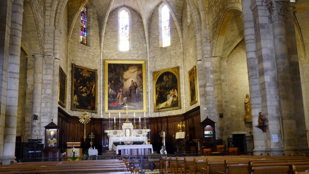 Zum einen in den Religionskriegen, dann noch mal in der Französischen Revolution wurde die Kirche teilweise zerstört, später nur noch halb so lang wieder aufgebaut. Der Kirchenraum hat uns durch seine angenehme natürliche Beleuchtung beeindruckt.