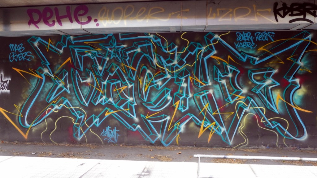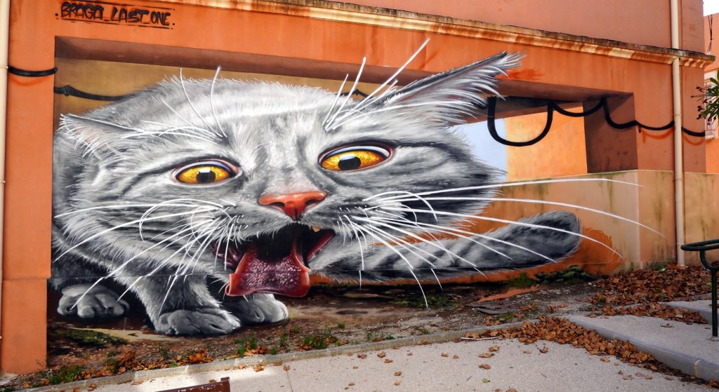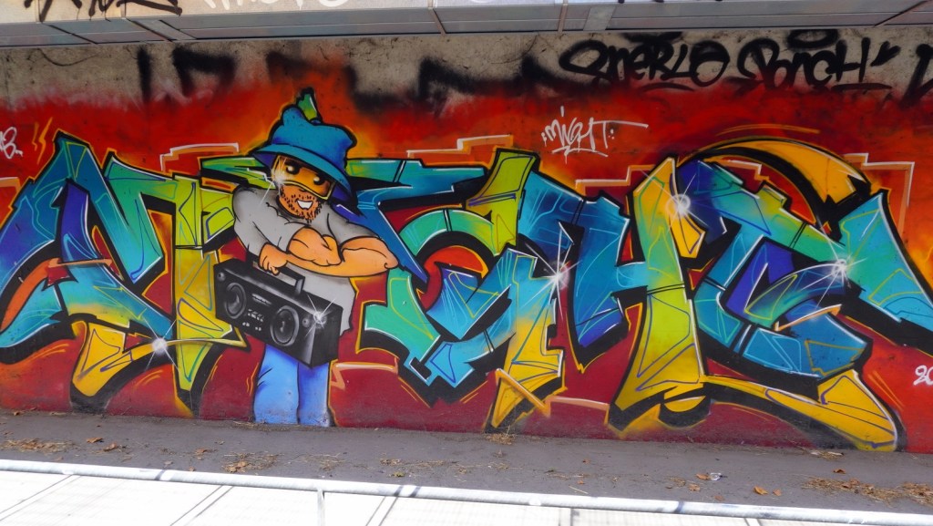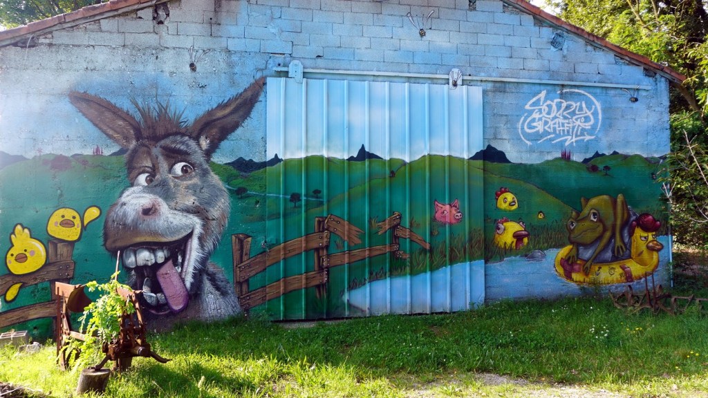 Deswegen fuhren wir zurück nach La Voute-sur-Rhône, wo wir gestern auf der Hinfahrt schon gegessen hatten. Der Seehecht war recht gut, die Nudeln dazu schmeckten langweilig. – Jetzt möchte ich noch ein Bild anhängen, dass ich schon vor einiger Zeit geknipst hatte, aber nachdem mein Blogbeitrag schon fertig war. Ich hoffe, das Graffiti gefällt.
