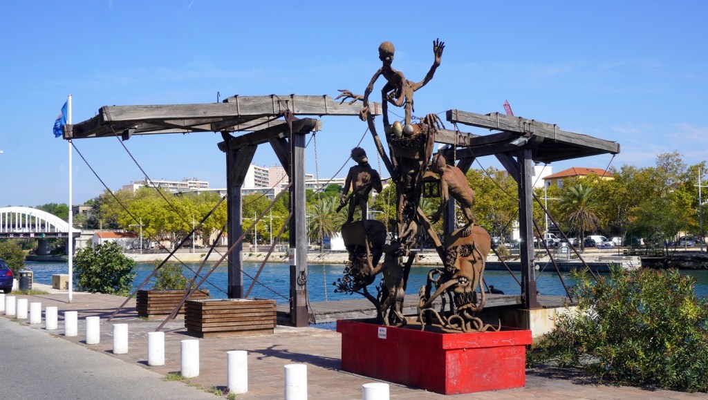 Liegt aber zwischen großen Industriekomplexen wie Raffinerien und Kraftwerken, die Tag und Nacht laufen und einen ständigen Geräuschpegel abgeben. Durchschnitten wird der Ort durch einen Kanal, der Fos-sur-Mer mit Port-de-Bouc verbindet und weiter per Tunnel bis Marseille führt.