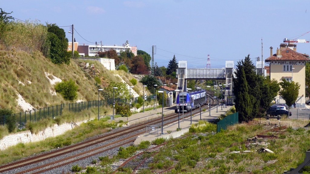 Hier begann unsere Tragödie: Wir fuhren schon zu spät los, blieben dann für einige Zeit außerhalb des Bahnhofs stehen und erfuhren irgend wann, dass unser Zug nicht bis Port-de-Bouc fahren würde. Es ging dann weiter. Eine Station vorher stiegen wir dann aus, außerhalb des Ortes, von der SNCF war niemand zu sehen, da der Bahnhof nur mit Automaten besetzt war. Ein kleiner Bus brachte uns dann erst mal in die Innenstadt. Es sprach sich dann herum, dass wir den 22-er Bus nehmen sollten, die angesprochene Fahrerin sagte aber, sie führe nicht nach Port-de-Bouc.