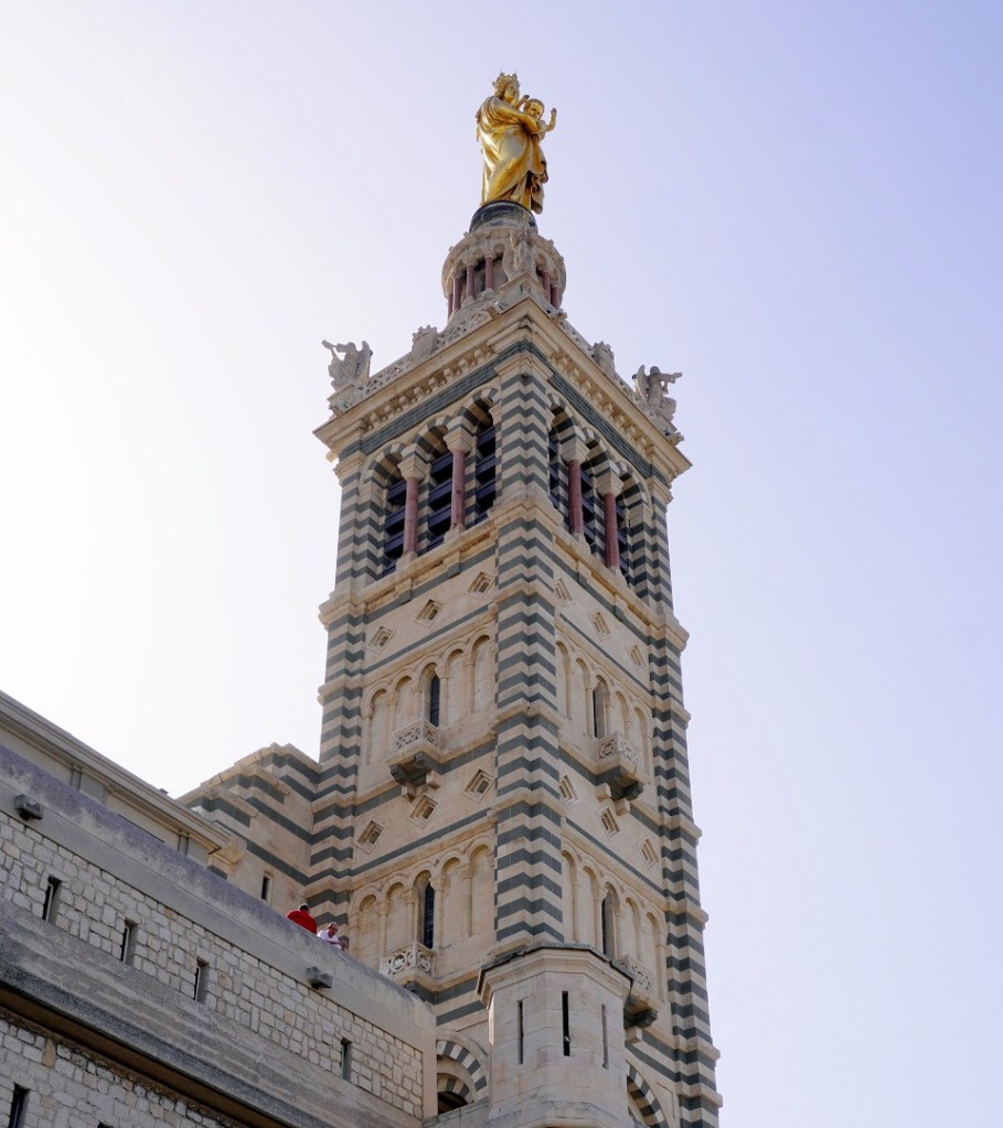 Um einen ersten Eindruck zu bekommen empfahl man uns den „Petit Train“ zu nehmen, der uns hinauf zur „Notre-Dame de la Garde“ bringen würde. Von hier oben hat man wirklich eine schöne Aussicht und die prachtvoll ausgeschmückte Kirche ist auch ein Besuch wert.