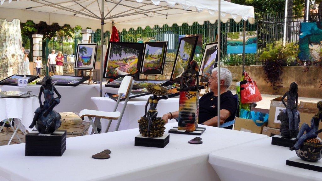 Da Sonntag war fand auf einem der kleinen Plätze eine Kunstausstellung statt. Ein Stück weiter schauten wir längere Zeit den Boule-Spielern zu und dann reichte es gerade noch um etwas zu essen bevor der letzte Bus uns zum Campingplatz für 90 Cent pro Person brachte.