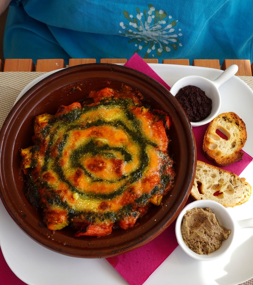 Nach einem gemütlichen Frühstück machten wir uns, begleitet von unseren Campnachbarn, zum Hafen auf. Dort bummelten wir entlang der Läden und schauten dem Treiben auf dem Wasser zu. Da es schon wieder recht warm wurde, entschieden wir uns mittags Salate zu bestellen und wir wurden nicht enttäuscht, wenn auch der überbackene Salat mit Sardellenpaste für Gudrun eine Überraschung war.