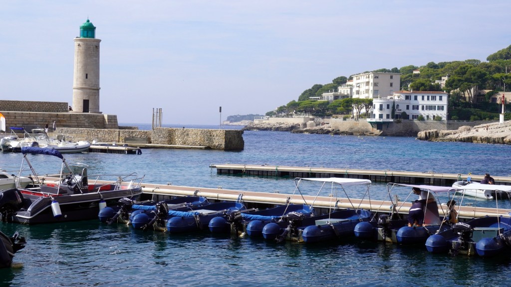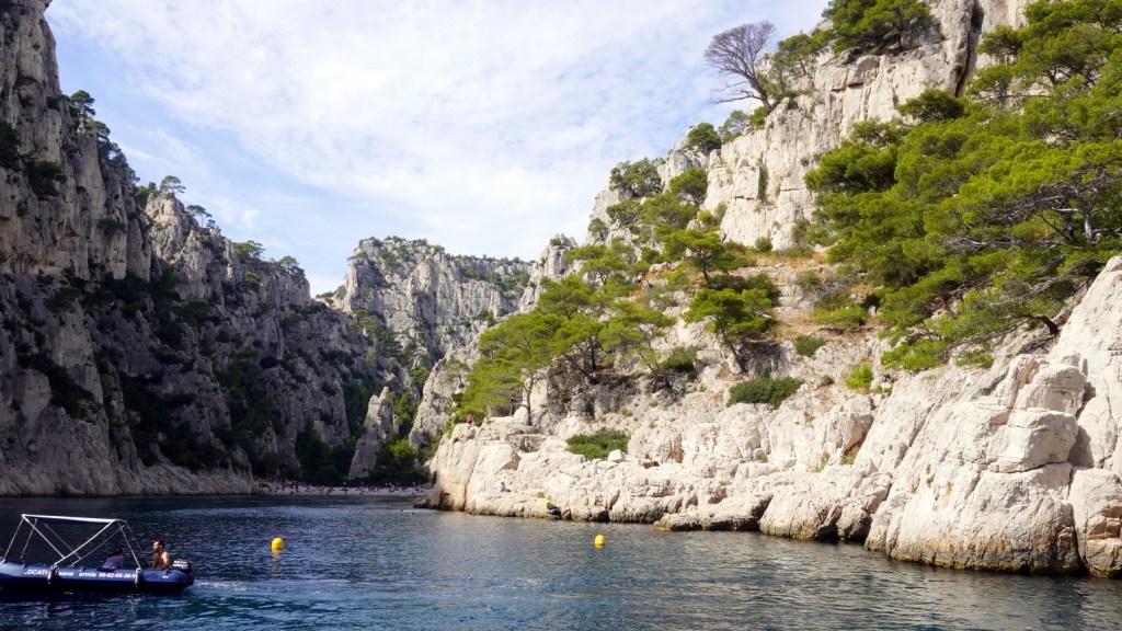 Die Calanque erstreckt sich zwischen Marseille und Cassis und ist ein über 120 Millionen Jahre altes Kalksteinmassiv. Die Gesteinsschicht ist bis zu 400m dick. Diesen Nationalpark wollten wir uns heute vom Boot aus anschauen.