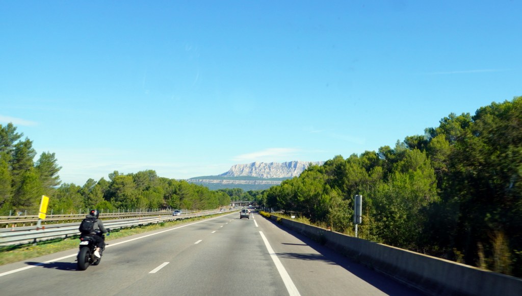 Auf der Fahrt hier her haben wir einen Schlenker entlang der Montagne St Victoire gemacht. Die Landschaft ist wunderschön und ideal für Wanderer und Bergsteiger, weniger ideal für ein größeres Wohnmobil, denn die Straße ist eher einspurig. Zurück über die parallel verlaufene Talstrecke waren wir dann schnell in Aix und auf unserem bekannten Platz Chantecler.