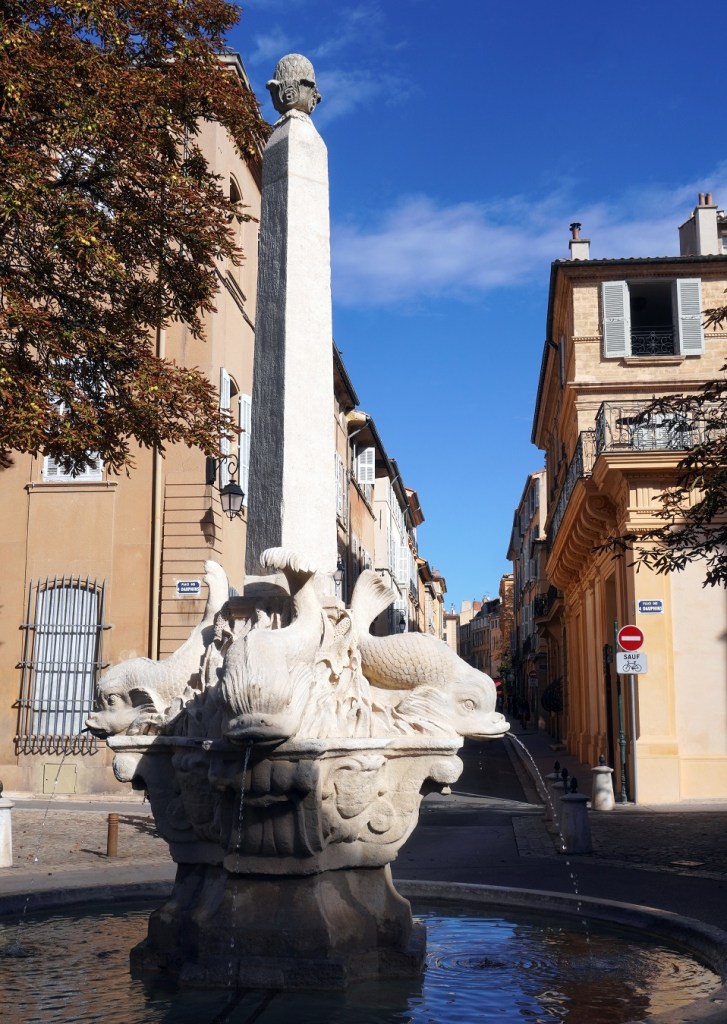Aix-en-Provence ist bekannt für seine vielen Brunnen. Von denen wollten wir uns etliche an Hand des Stadtplans anschauen. Der Reiseführer empfiehlt zudem noch einen bestimmten Rundkurs, an dem wir uns außerdem orientierten. Wie das letzte Mal bezauberten uns die Atmosphäre, die hübschen Geschäfte und natürlich die architektonischen Highlights wie die Brunnen, Kirchen und Profanbauten.
