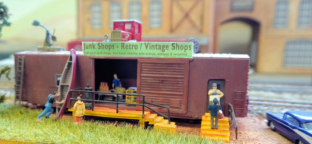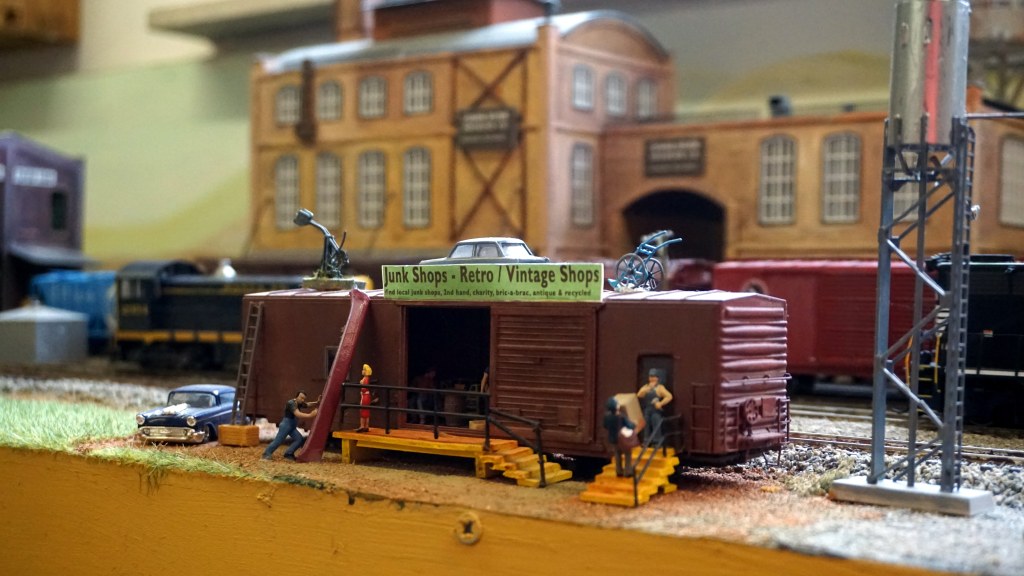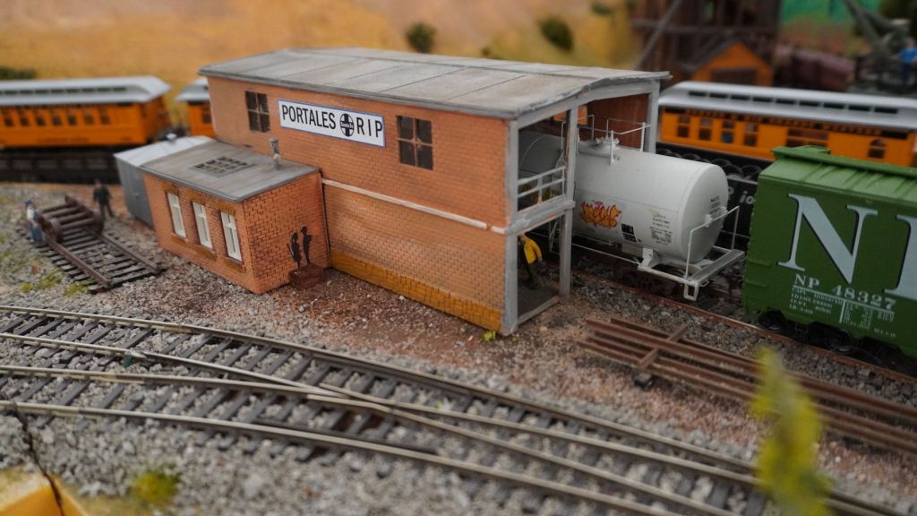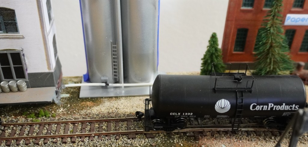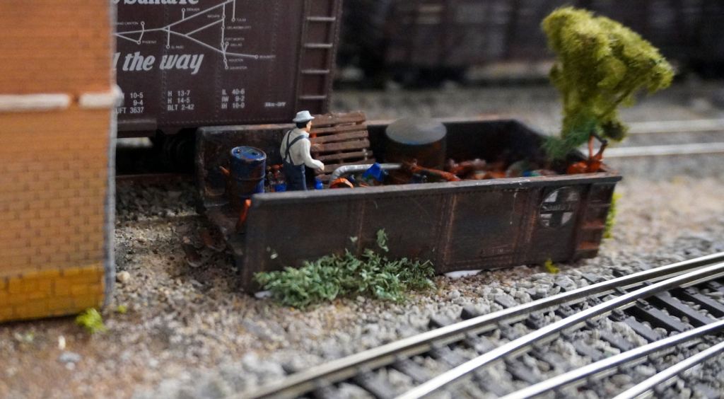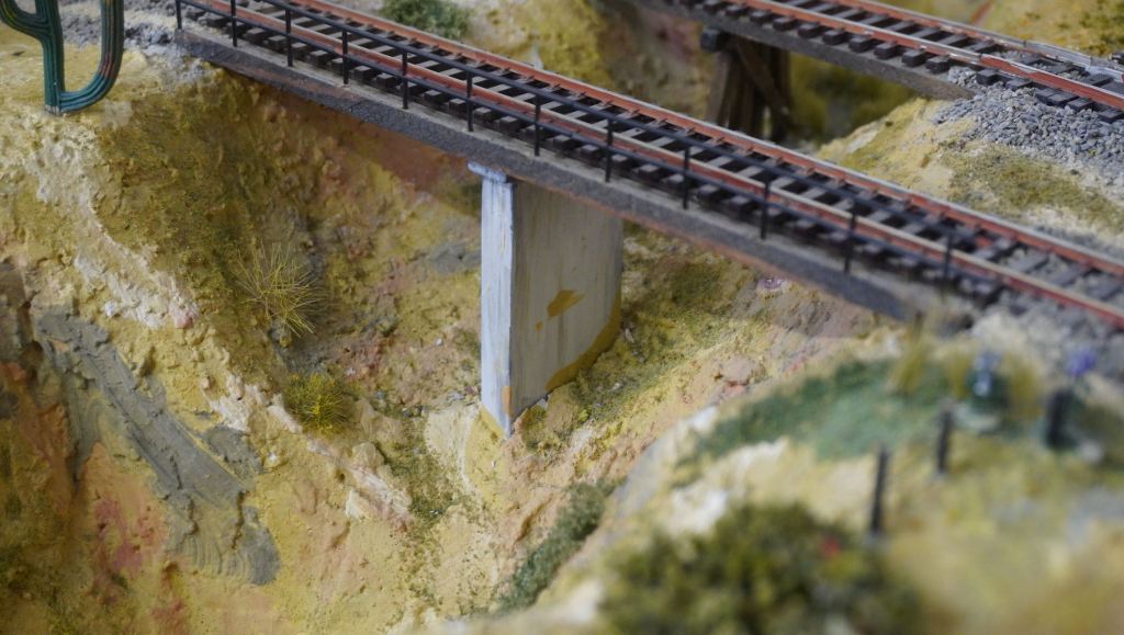 Um keine falschen Hoffnungen zu machen, hier handelt es sich nur um eine Attrappe. Die letzten Weichen, die ich eingebaut habe, haben Federn, die die Lage der Weichenzungen fixieren. Da habe ich auf jeglichen Antrieb verzichtet und stelle die Weiche mit einem Schaschlikspieß, den ich zum Kuppeln eh immer in der Hand habe.